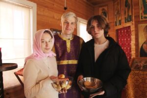 Ребята помогали батюшке проводить службу, читали и пели на клиросе. А после службы они угощали прихожан испечёнными жаворонками, ведь по русской традиции их пекут в память о Севастийских мучениках.