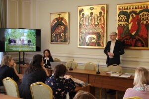 С приветственным словом к собравшимся обратилась заведующая кафедрой педагогики ПСТГУ, профессор, доктор пед.наук С.Ю. Дивногорцева. Она рассказала о духовно-нравственном воспитании личности в теории православной педагогической культуры. Далее был представлен наш проект «До́брое сло́во«, обоснована авторская методика комплексного подхода к духовно-нравственному воспитанию личности, которая разрабатывалась с 2008 года и апробировалась на практике. Были заданы интересные вопросы от ученых, студентов и педагогов о том, как устроена наша воскресная школа, как разрабатывались наши пособия. Во второй части круглого стола был проведён мастер-класс по использованию УМК «До́брое сло́во«.