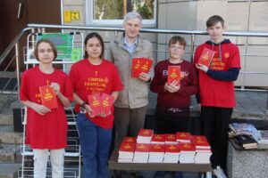 - Участие в миссионерских акциях с раздачей листовок, Евангелия, брошюр;